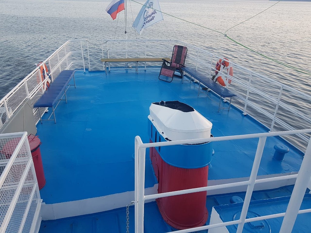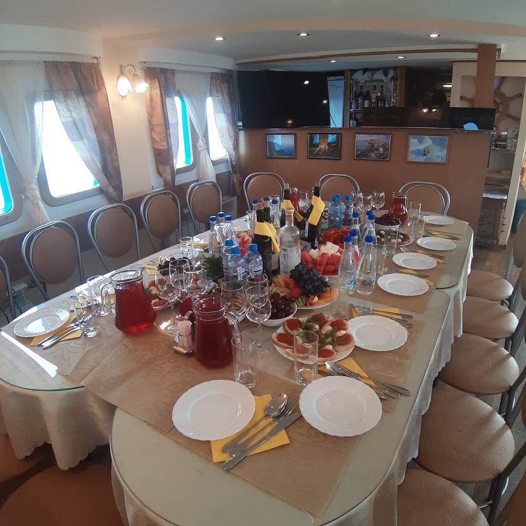 На теплоходе имеется просторная кают-кампания для отдыха и организации питания, которая оборудована музыкальным центром, переносной музыкальной колонкой, телевизором.