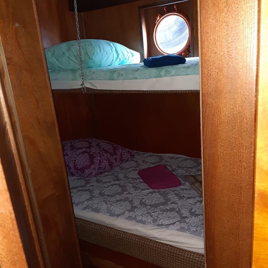 На борту имеется сауна, душ, туалет. Предусмотрен трап для ныряния и выхода из воды. На судне установлена моторная лодка вместимостью до 5 человек.