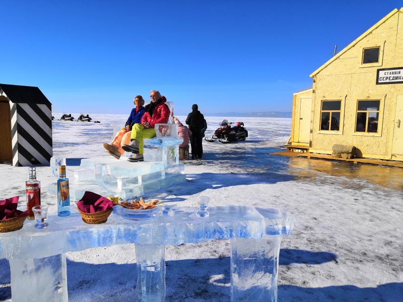 Затем вы отправитесь на станцию «Середина». Это проект исторической реконструкции путевой станции, которая в начале XX века работала на льду Байкала. Здесь вас ждет интерактивная экскурсия, фотосессия в элементах экипировки военных и местного населения, а также, обед с ароматным чаем. Продолжительность экскурсии 5 часов.